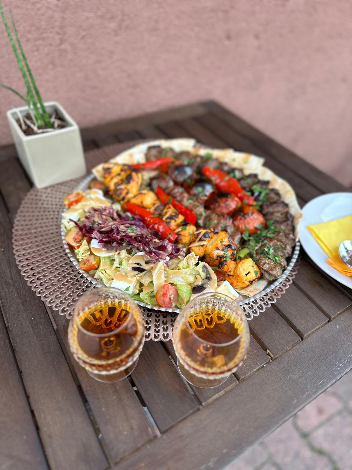 Bewertet mit 3.60 von 5(05 reviews)Ein Spieß Lammhackfleischspieß und ein Spieß Hähnchenbrust mariniert in hausgemachter…$24.50 -